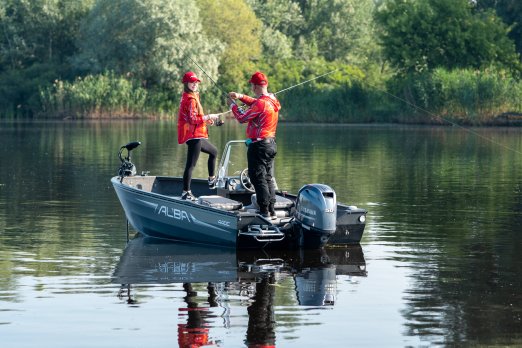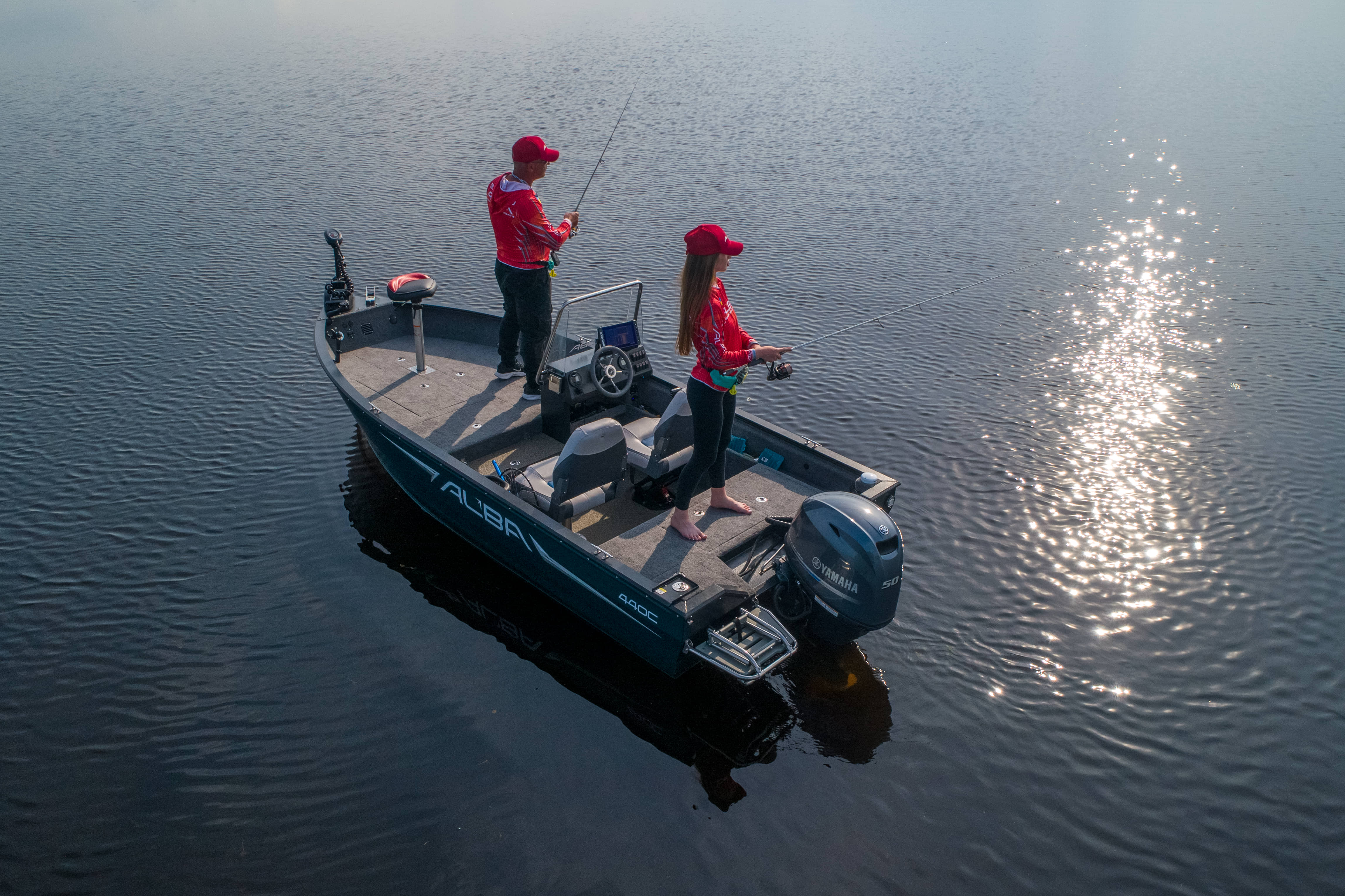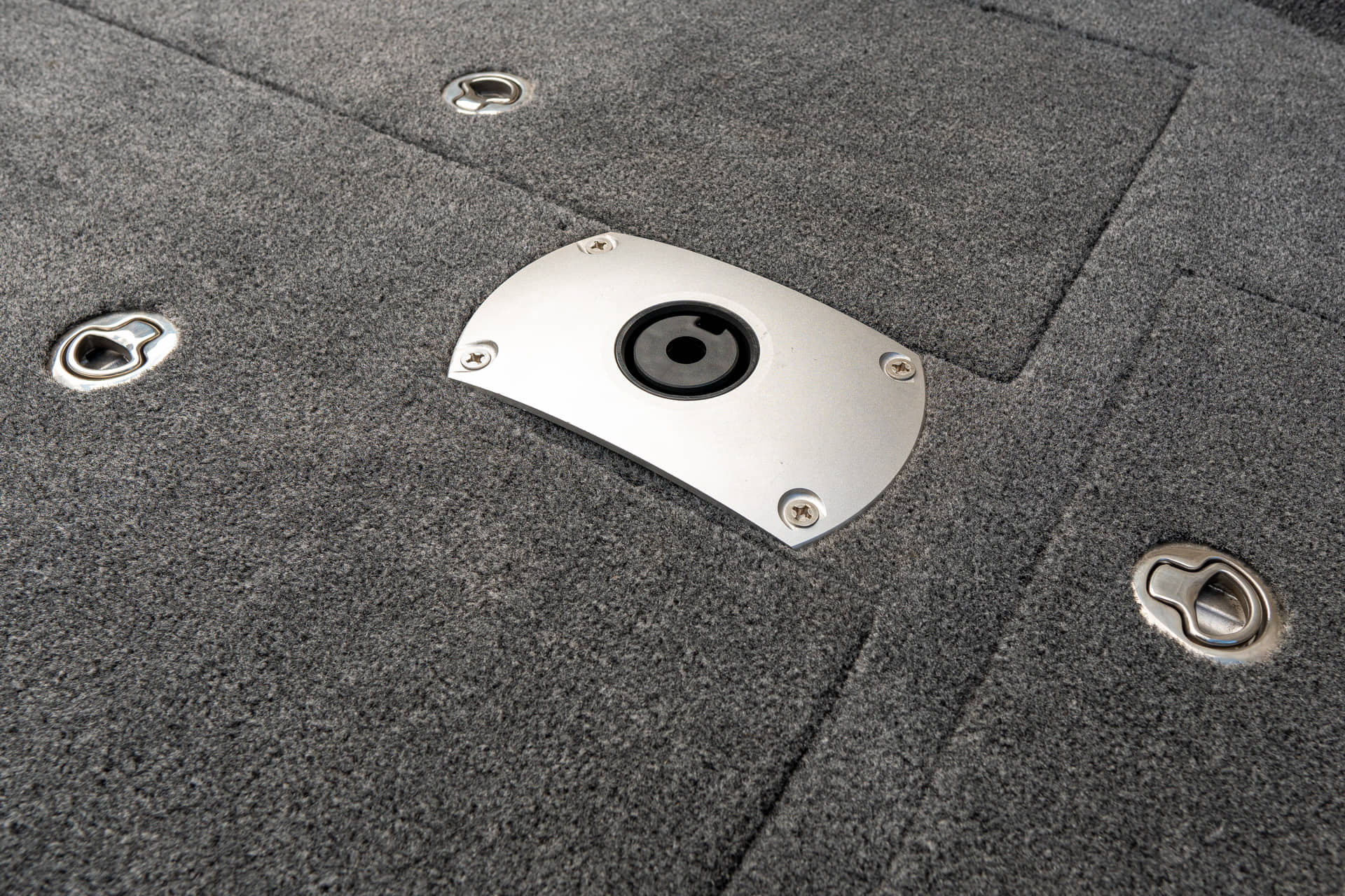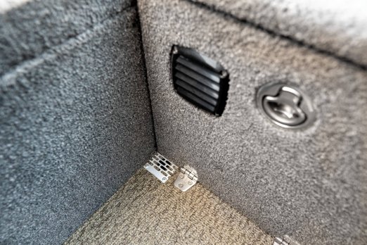 Angelplattform mit 80-Liter-Aquarium mit Sauerstoffzufuhr und vier Staufächern Navigationslichter (grün, rot) Bilgenpumpe HAUPTSCHALTER Auskleidung des Stauraums Zwei USB-Anschlüsse – Typ C Bedienfeld mit 4 Tasten Außenteppich für Boote (hinteres Angeldeck und Seitenwände) Bodenbelag aus Vinyl (Angeldeck, Stauraum, Cockpit) Edelstahl-Schrankschloss-Set Vier Ankerratschen aus Edelstahl Sicherungskasten für 6 Geräte Zwei Ablagefächer zur Aufbewahrung von Spulen auf der rechten und linken Seite An Steuerbord befindet sich eine Vorrichtung zur Aufbewahrung und zum Transport von zwei Angelruten. Vorbereitung zum Einbau der Batterie Kapitänssitz auf einem Podest Kabelmanagement Aluminiumkonsole mit Windschutzscheibe