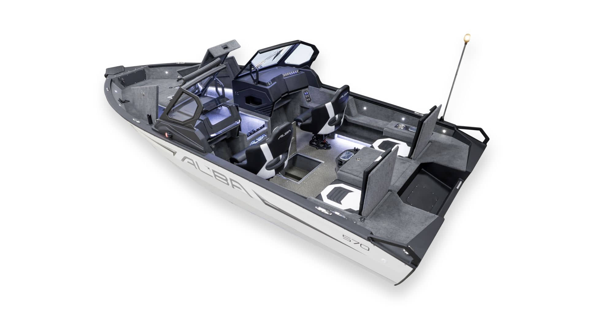 Wir freuen uns, Ihnen unser lang erwartetes neues Modell vorstellen zu dürfen – die ALBA 570. Dieses Aluminiumboot ist für alle gedacht, die Komfort, Zuverlässigkeit und fortschrittliche Technologien auf dem Wasser schätzen. Das ALBA 570 kombiniert fortschrittliche technische Lösungen mit elegantem Design und ist damit das ideale Aluminiumboot für jede Art von Freizeitaktivitäten, von Familienausflügen bis hin zum professionellen Fischfang.